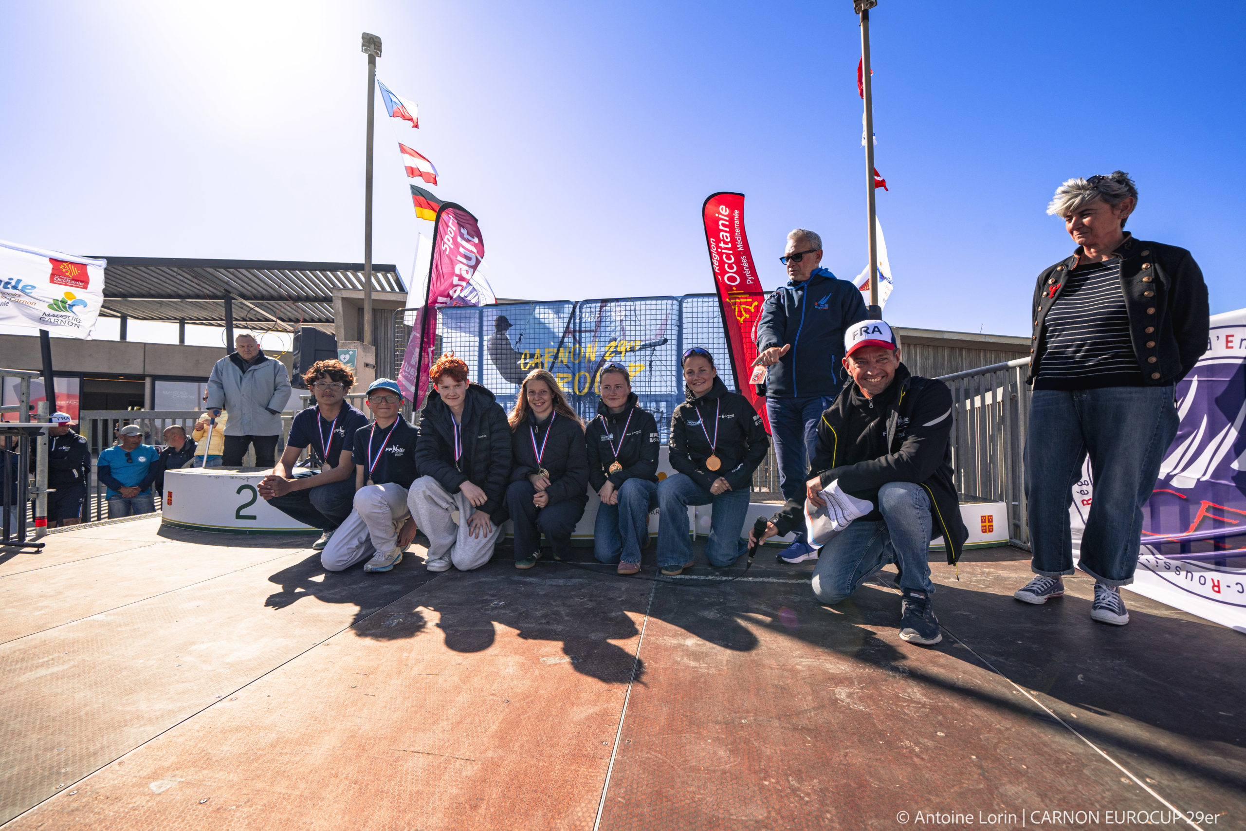 Venez assister au podium de la Carnon 29er Eurocup récompensant les meilleurs équipages. Les Athlètes de toutes les nations seront titrés avec des trophées réalisés par Sauvage-Med à partir de plastique collecté sur les plage et recyclé.